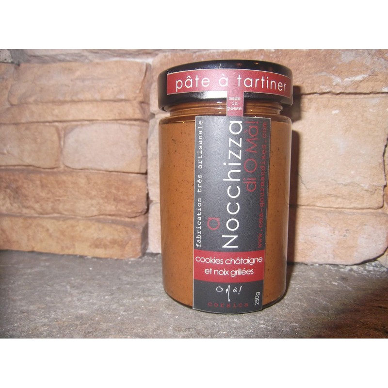 ingredients: noix, noisettes, amandes, sucre, cacao, beurre de cacao, pate de cacao, lecithine de soja, lait entier, arome naturel de vanille, sucre glace. cukizzi maison: farine, sucre, beurre, noix, oeufs, poudre a lever, farine de chataigne, chocolat au lait.